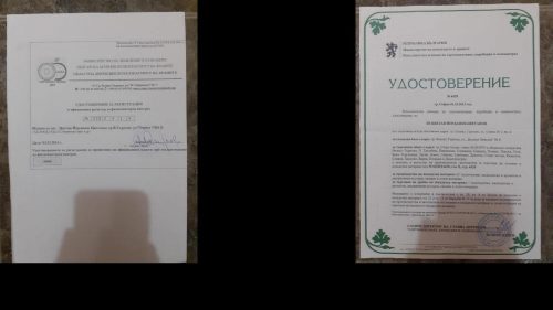 Притежавам лиценз за производство и търговия. В момента производството се извършва в землището на село Писарево, община Горна Оряховица, на площ от 30 декара. Продължавайки традицията в работния процес се включва и синът ми.